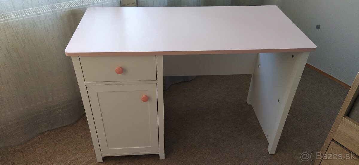 predám dievčenský písací stôl. celkové rozmery: hĺbka 52cm; šírka 110cm; výška 75cm. Iba osobný odber.