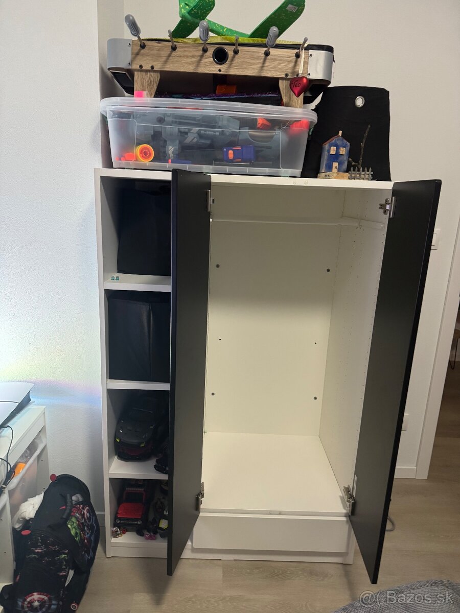 Predám skrinku z Ikey rozmery sú výška 120 šírka 104 a hĺbka 60. Bielo cierna väčšia časť na vesanie a na boku police.