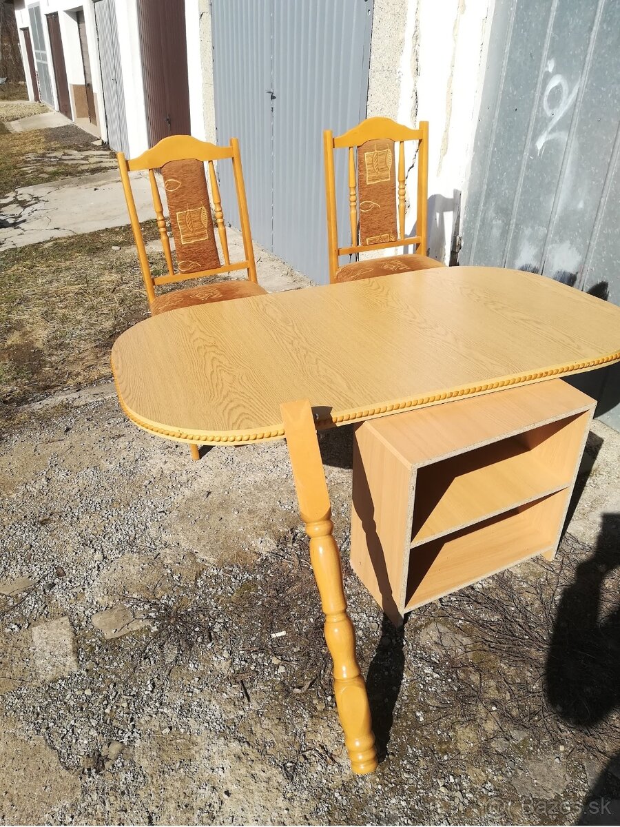 Jedálenský stôl so stoličkami - [24.1. 2026]Predám krásny rozťahovací drevený jedálenský stôl so štyrmi stoličkami s podsedákmi. Cena komplet 290€.