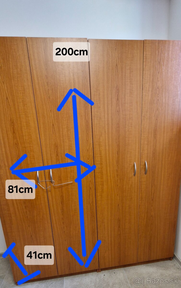 Nové skrine š80xh42xv200cm. Kombinovateľné s noč.stolíkom 15,- (š40xh43xv40), stolom 40,-(81x81x75) a váľandou(80x200) 80,-, ktoré tiež ponúkam. Mám viac kusov zo všetkého.Kuk na moje inzeráty.