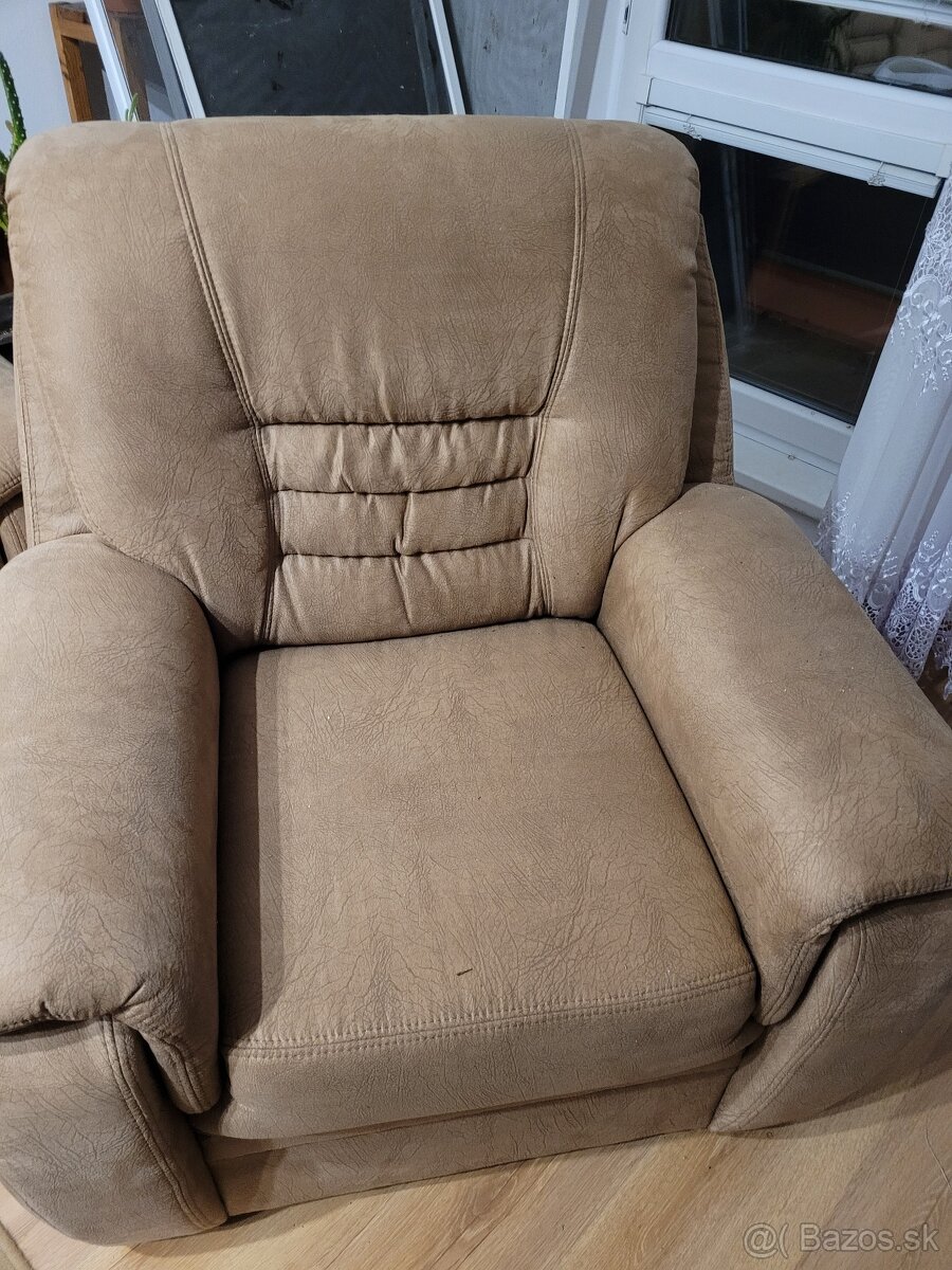 Predám veľkú sedaciu semišovú súpravu, ktorá pozostáva z veľkej sedačky a dvoch kresiel. Kreslá sú široké 95 cm a gauč je dlhý 265 cm. Nieje rozťahovací, ale má dva praktické úložné priestory. Pôvodná cena bola 800 eur. Teraz 300 eur.