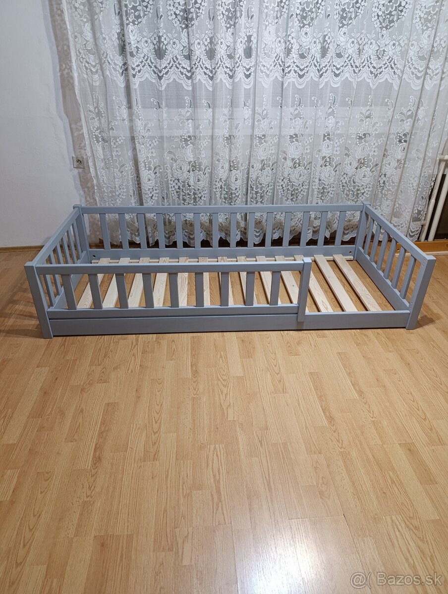 Nová detská posteľ, z borovicového dreva. Všetky ostré hrani na posteli sú zaoblené pre zpečnosť vašeo dieťaťa.200x90 odtieň seda