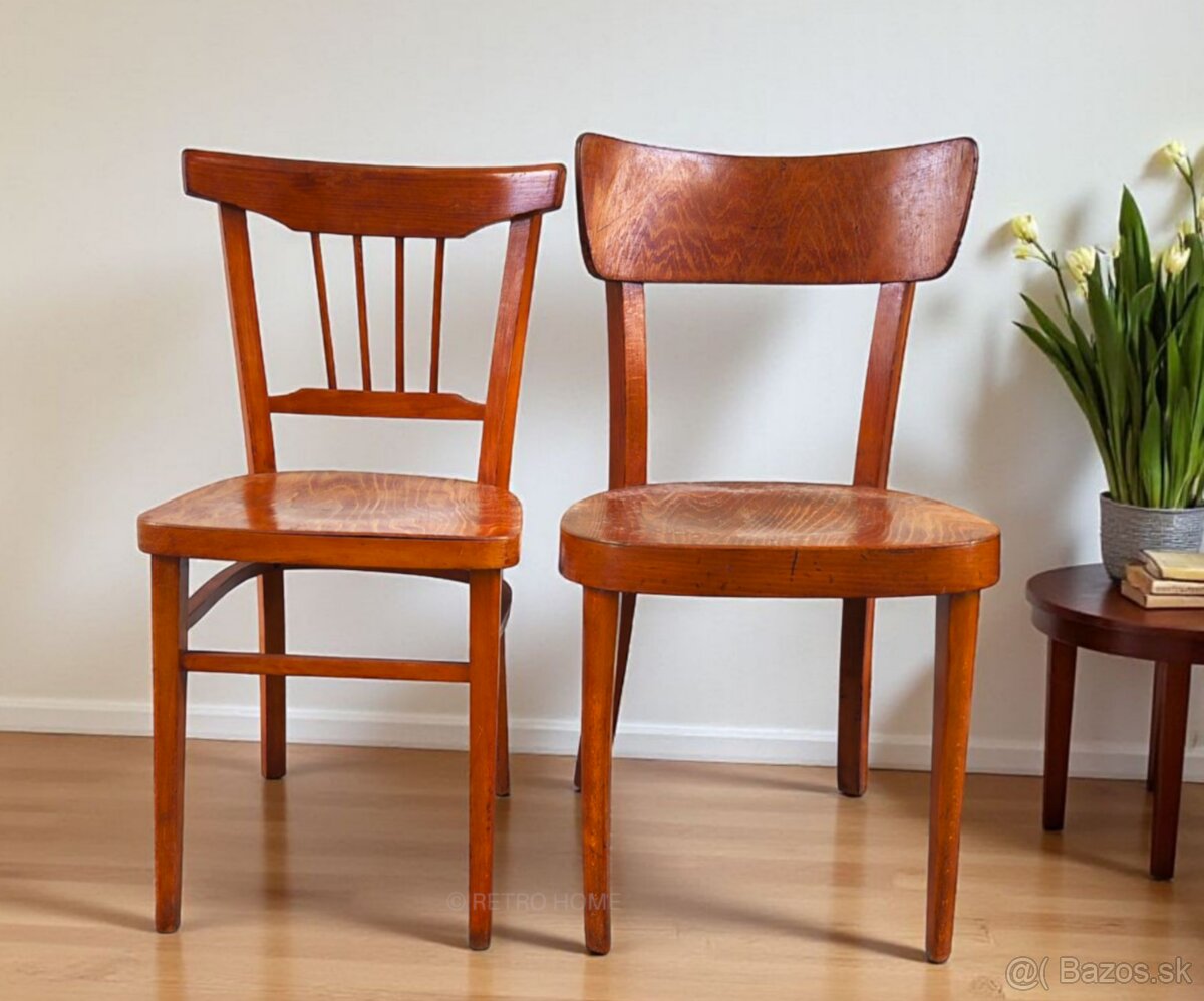 Predám 2 rôzne retro celodrevené stoličky, ideálne na renováciu podľa vlastných predstáv, cena 25€ za kus.