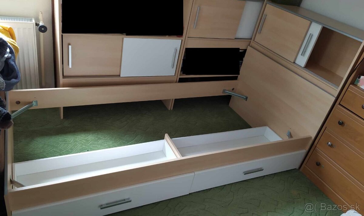 Predam detsku postel 90x200cm s rostom a jednou skrinkou. Prikladam montazne navody a rozmery.
