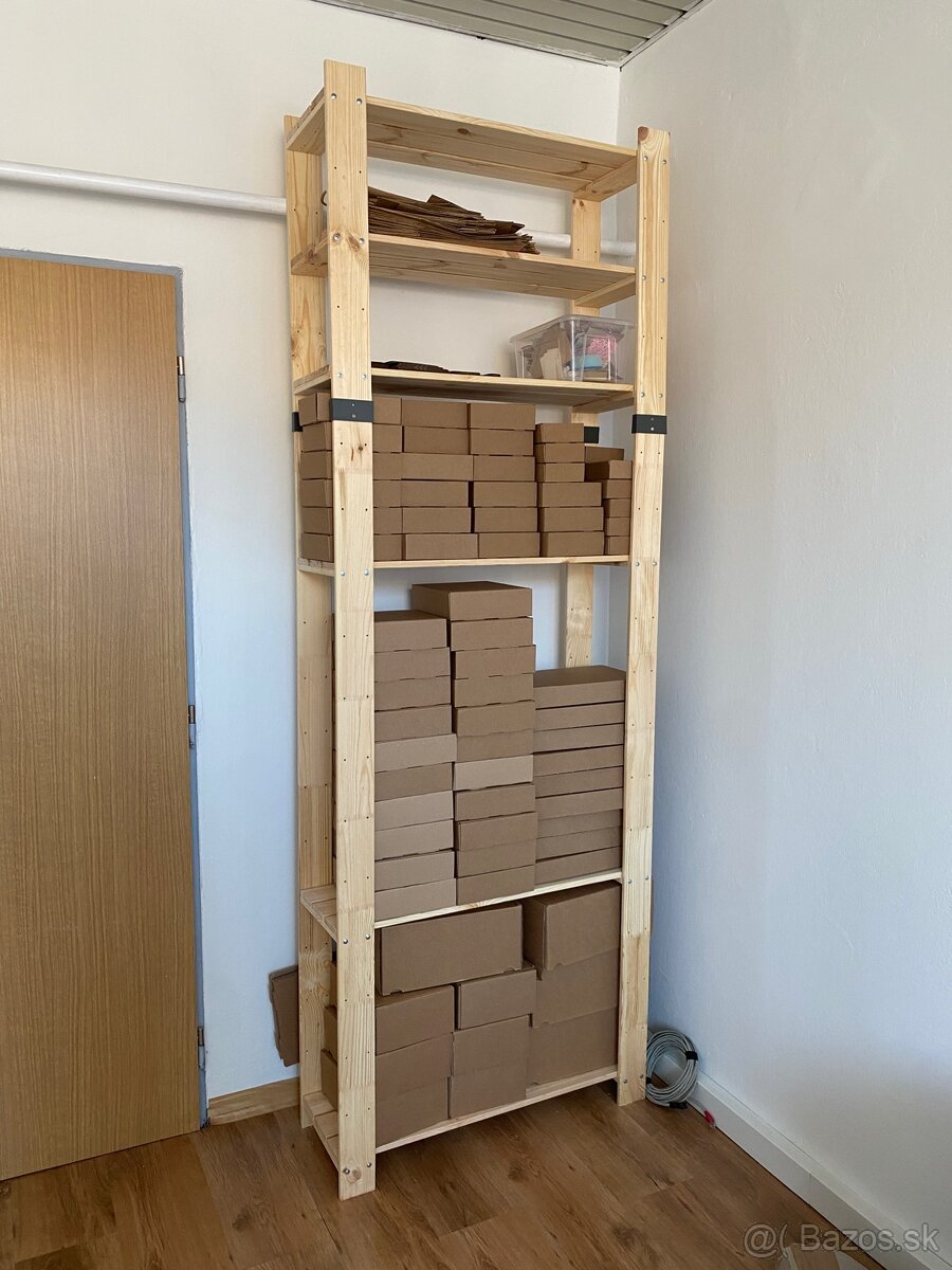 Vysoky drevený regál z borovice