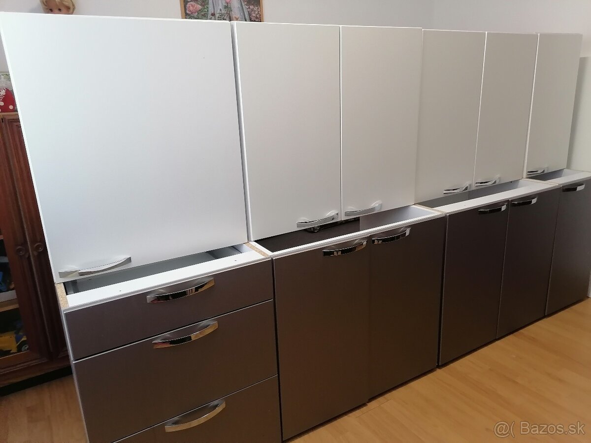 Predám kuchynskú linku, má zhruba dva roky. Na skrinkách sú štelovacie závesy, kvalitné pánty so somočinným dojazdom a aj kolajničky na šuflíkoch sú so somočinným dojazdom. Skrinky sú 1x šuflíkova 60cm,1x úzka 40cm a 2x veľká 80cm plus časť pracovnej dosky v dĺžke 135cm.