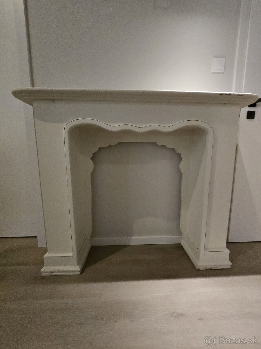 Predám dekoratívnu kozubovú konzolu v provensálskom / vintage štýle. Vhodná ako dizajnový doplnok do obývačky, chodby alebo spálne – krásna napríklad na sviečky, dekorácie či sezónnu výzdobu.