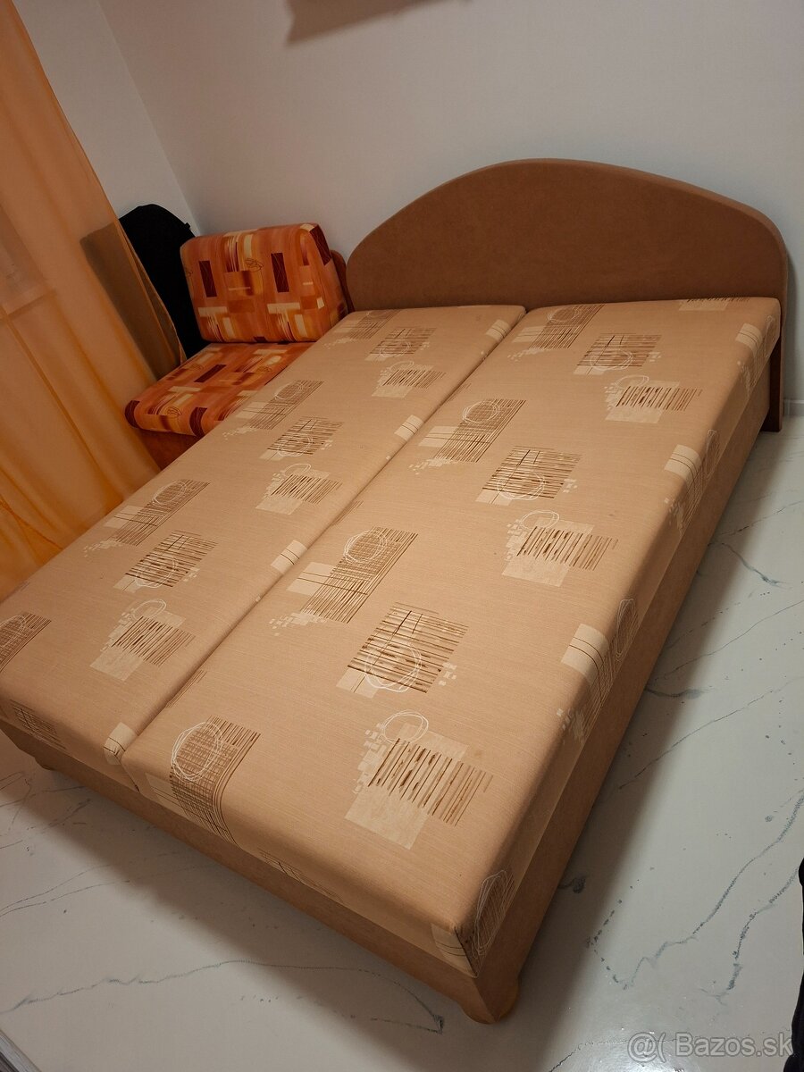 Predám manželskú postel malo používanú s úložným priestorom rozmery V 50cm Š 160cm D 200cm plus rozkladacie kresielko.dohoda možná.lokalita Bidovce pri Košiciach.odbwr možný ihneď.