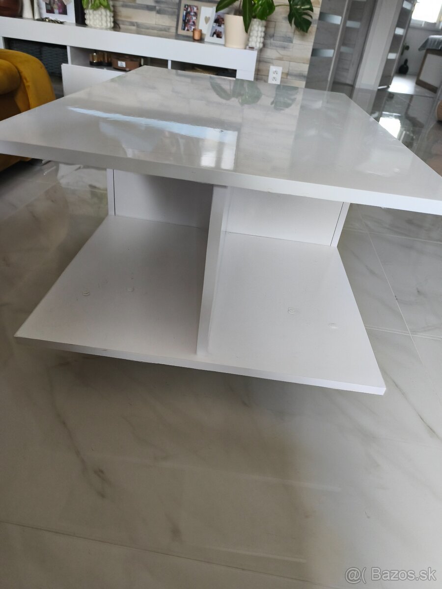 Biely konferenčný stolík má úložný priestor a je aj koleckach je na ňom mala bodka, rozmery 90x60x45cm ,odber ihneď,cena 19 eur