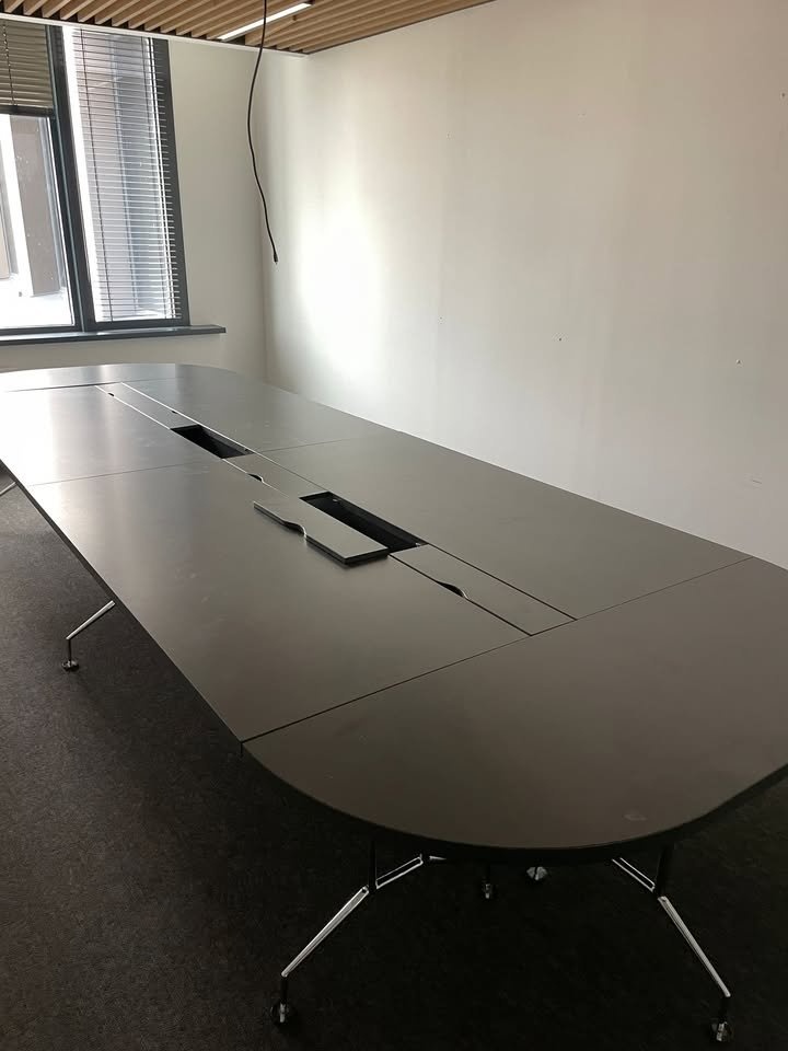 Konferenčný stôl (MDF) 120 x 60 napr. k pracovnému stolu - [15.2. 2026]Predám oválny modrý konferenčný stôl vhodný k pracovnému stolu či či dvom protiľahlým pracovným stolom. Nohy stola sú vysoké ako kancelárske stoly, sú chrómované vrátane podstavných "tanierov", ktoré sú navyše vyplnené betónom pre lepšiu stabilitu a náter je zatretý farbou. Stôl je veľmi stabilný, n ...