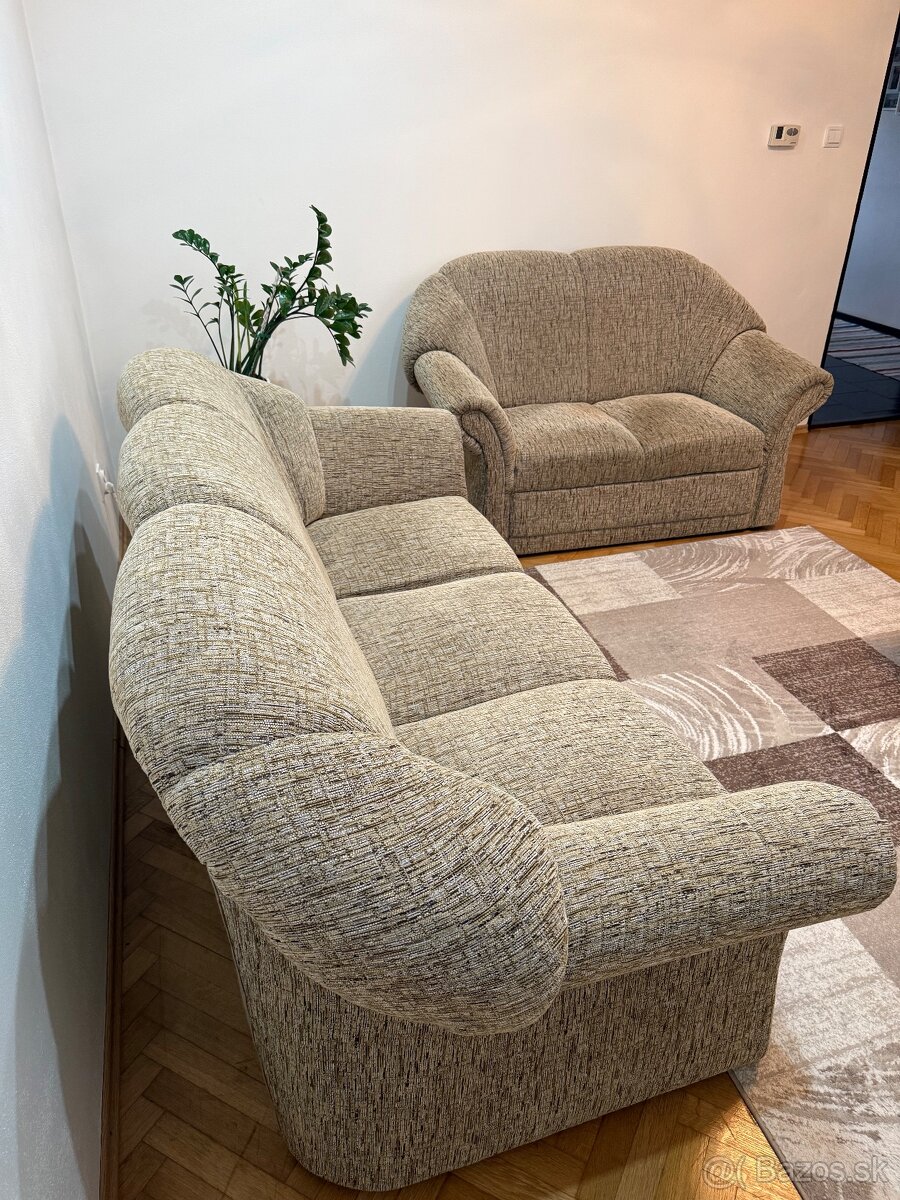 Darujem zachovalú rohovú sedačku v béžovej farbe spolu s fotelkou za symbolickú cenu – balíček kávy a bonboniéru.