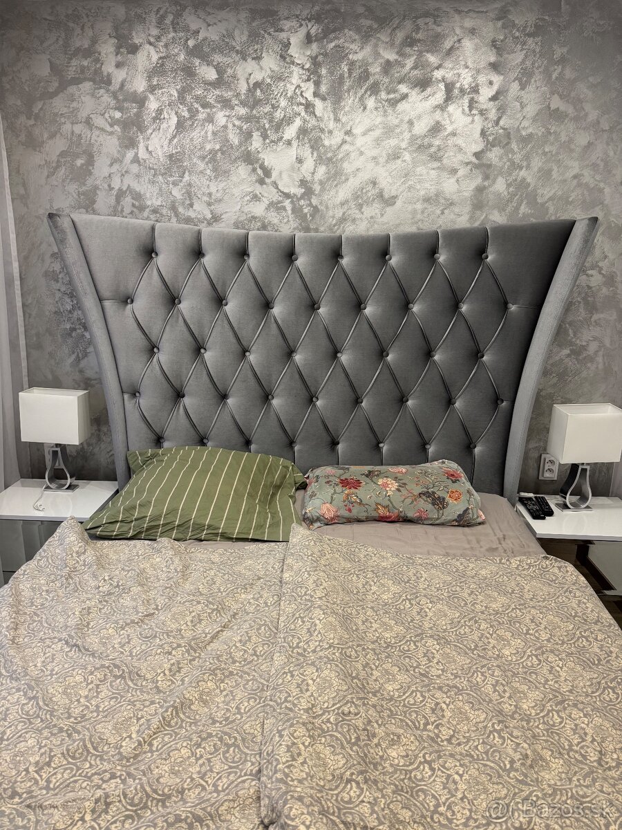 Čalúnená strieborná postel bez úložného priestoru. S kvalitnými matracmi 2ks. Vo veľmi dobrom stave. Rozmery postele 170cm šírka, matrace 2x80cm, výška čela postele 165cm, vyska 46cm. Cena je aj s matracmi komplet.