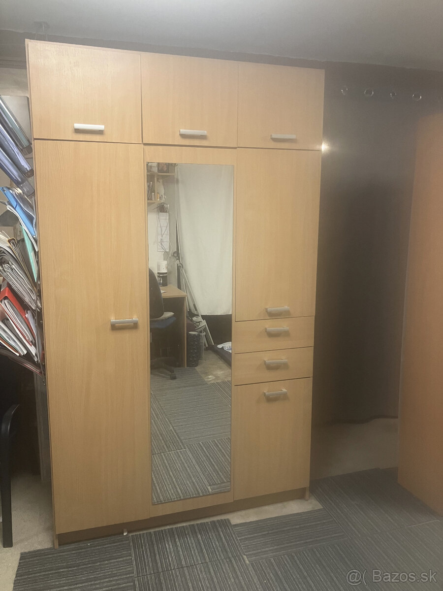 Predám viacdverovú šatníkovú skriňu so zrkadlom v dobrom stave. Dekor Buk.