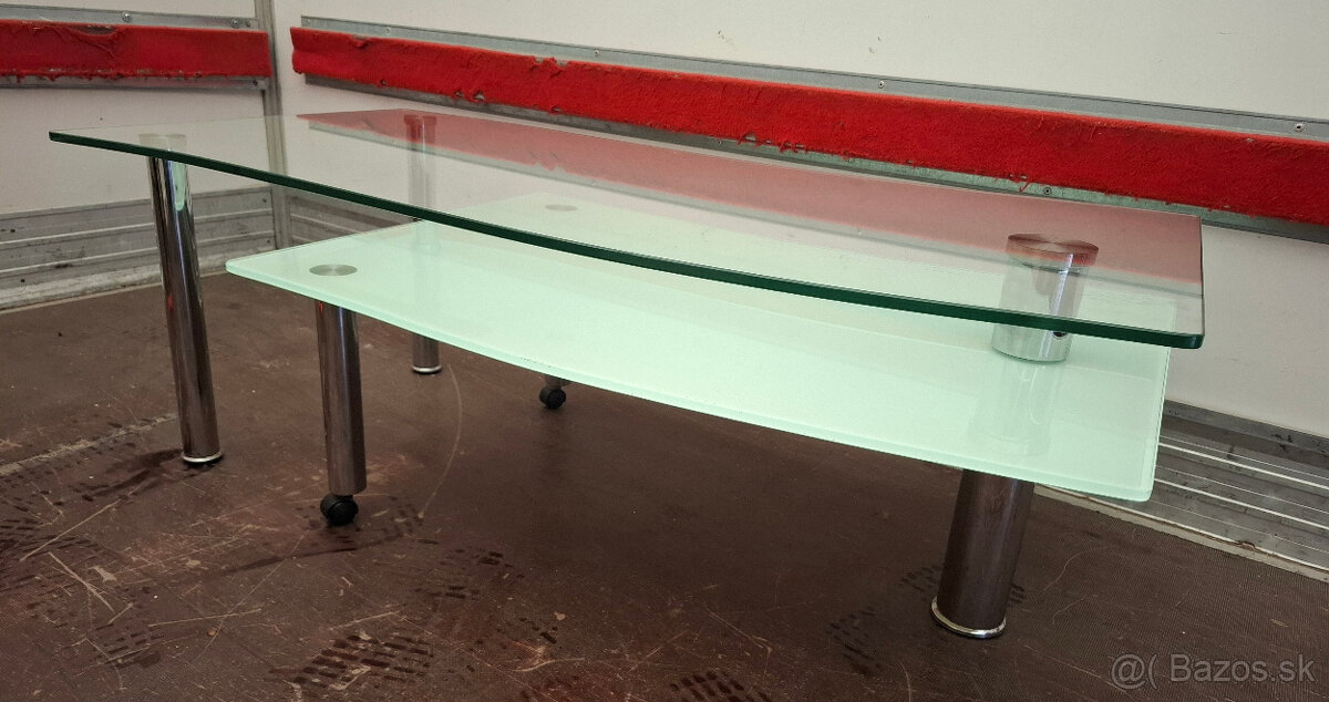Stolik ma hrubé sklo + vnutrný stôl má kolieska.