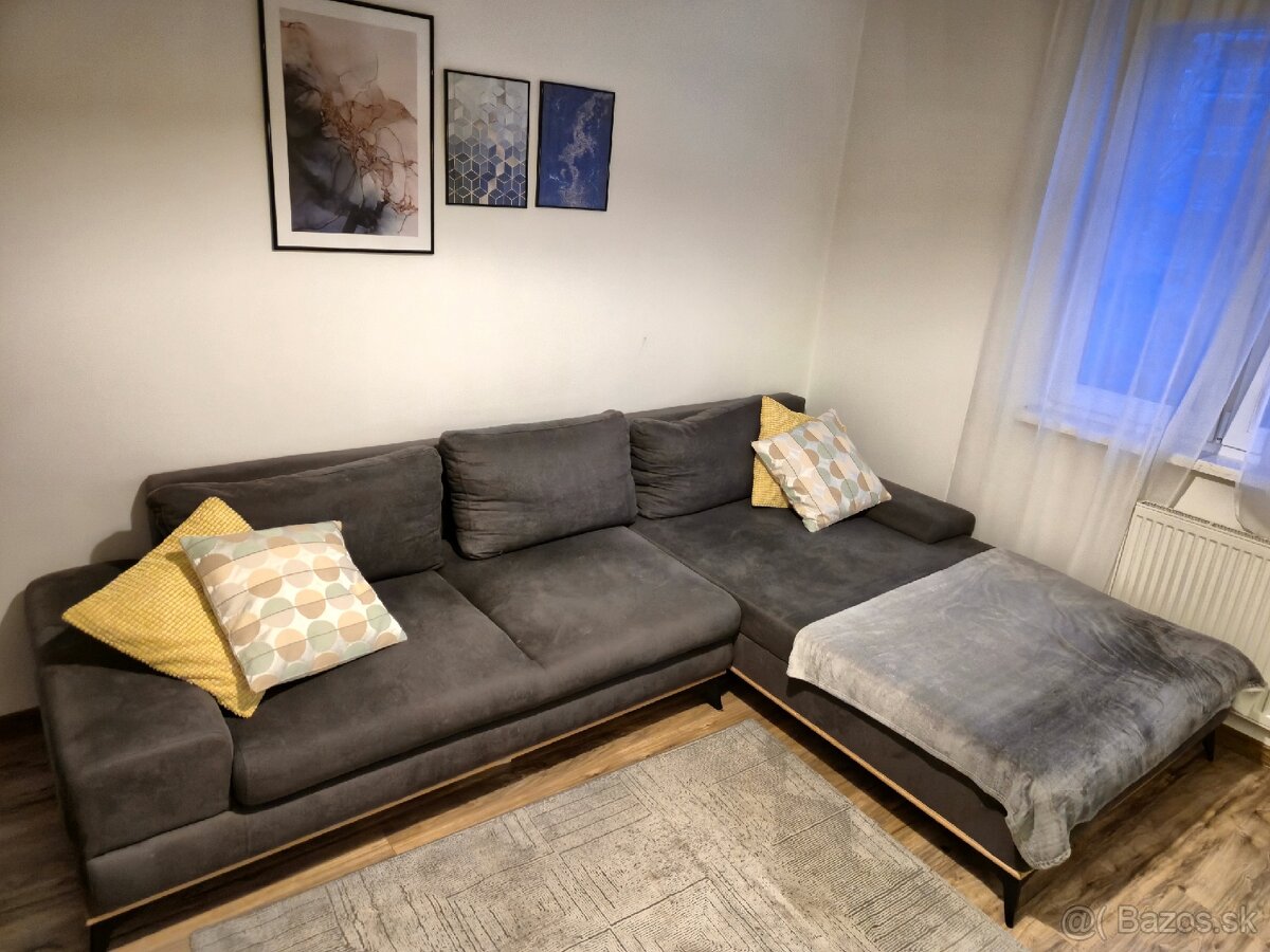 Predám rohovú sedačku, používanú približne 2 roky, vo veľmi zachovalom a čistom stave. Sedačka je pohodlná, bez výrazných známok opotrebenia.Materiál je príjemný šemiš (semišový poťah).