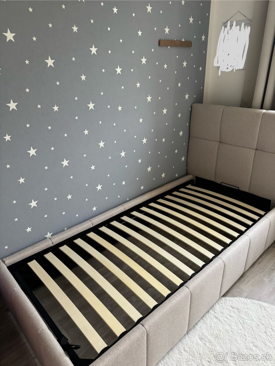 Predám novú čalúnenú posteľ, bohužiaľ nezmestila sa nám s čelom do priestoru, kde sme potrebovali. Kupovaná v september 2025. Posteľ sa predáva bez matraca.