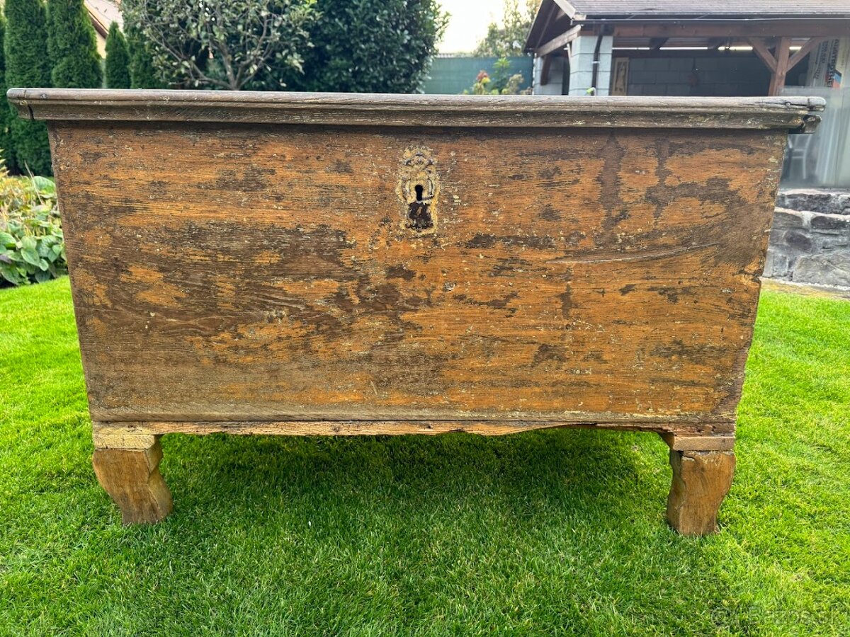 Predám starú drevenú truhlicu. Má rozmery 112 cm x 64 cm x 74 cm. Šetrná úprava povrchu truhlice zachováva jej prirodzenú krásu. Nie je potrebná ďalšia úprava. Stav viď. fotky.