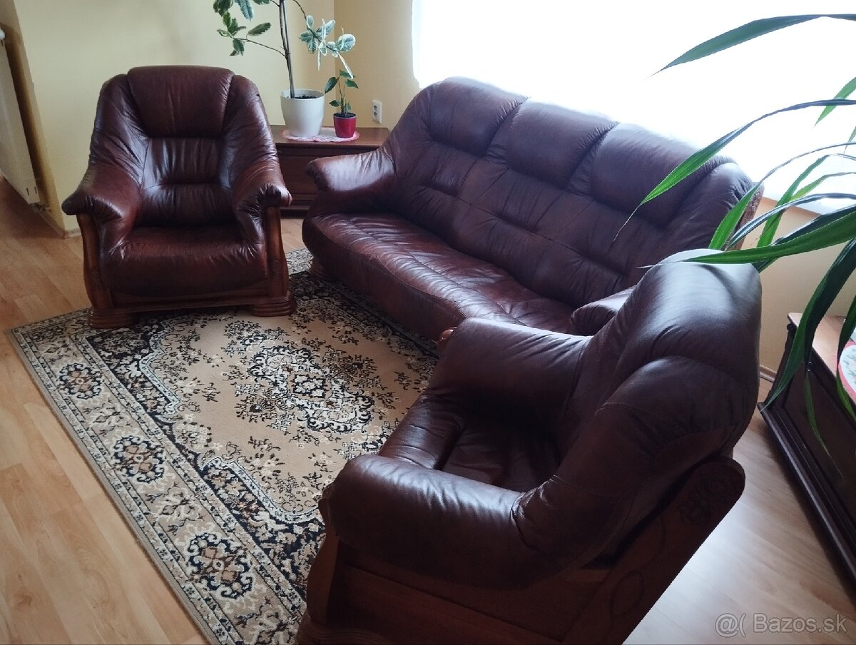 Kozena sedacia suprava - [18.2. 2026]Predam kozenu sedaciu supravu v velmi dobrom stave s drevenym korpusom (skoro ako novy)....