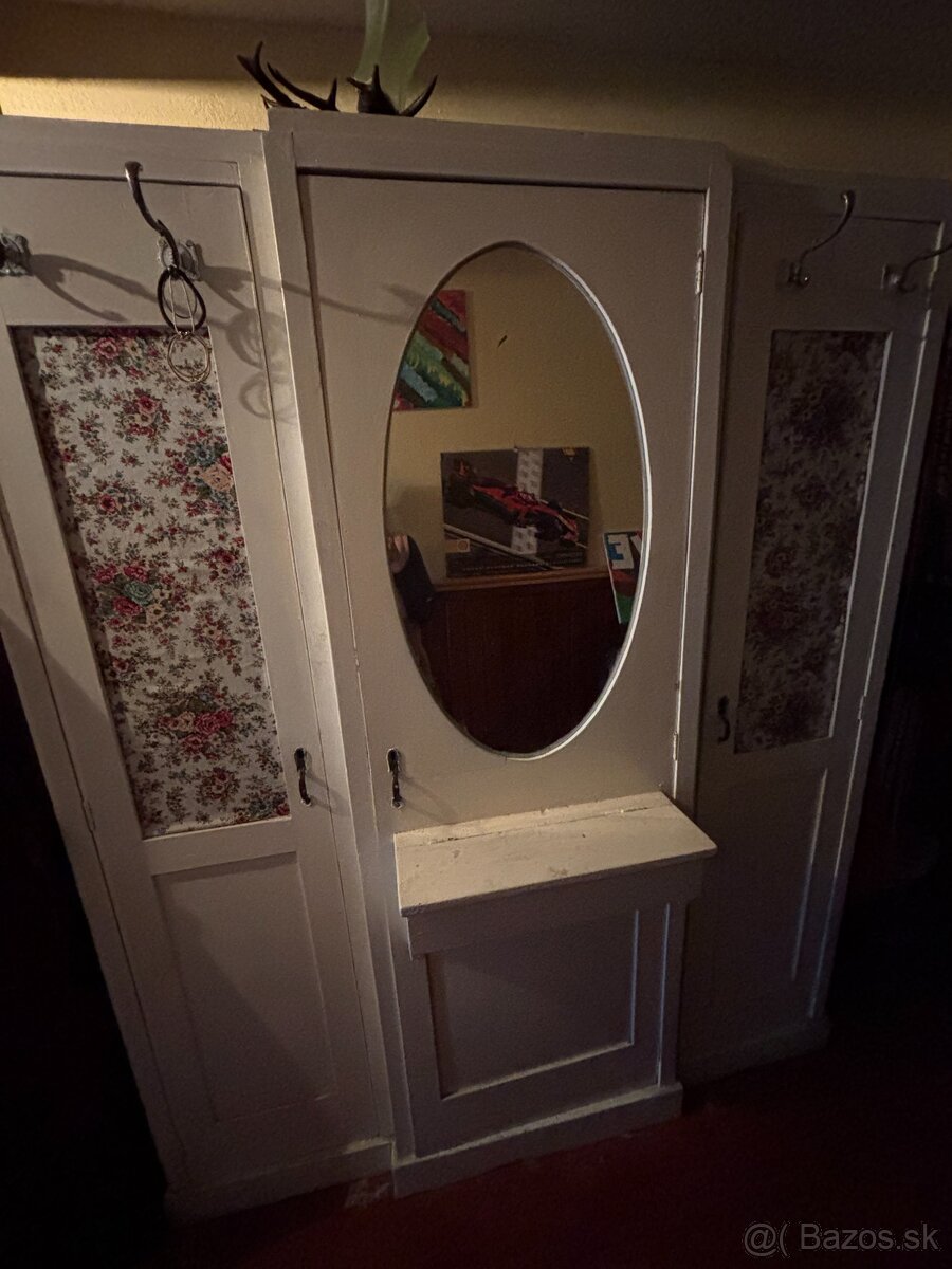 Vintage satnikova skrina vhodna do predsiene, po oboch stranach policky, v strede miesto na zavesenie oblecenia. Kusok z 80tych rokov. Iba osobny odber KE