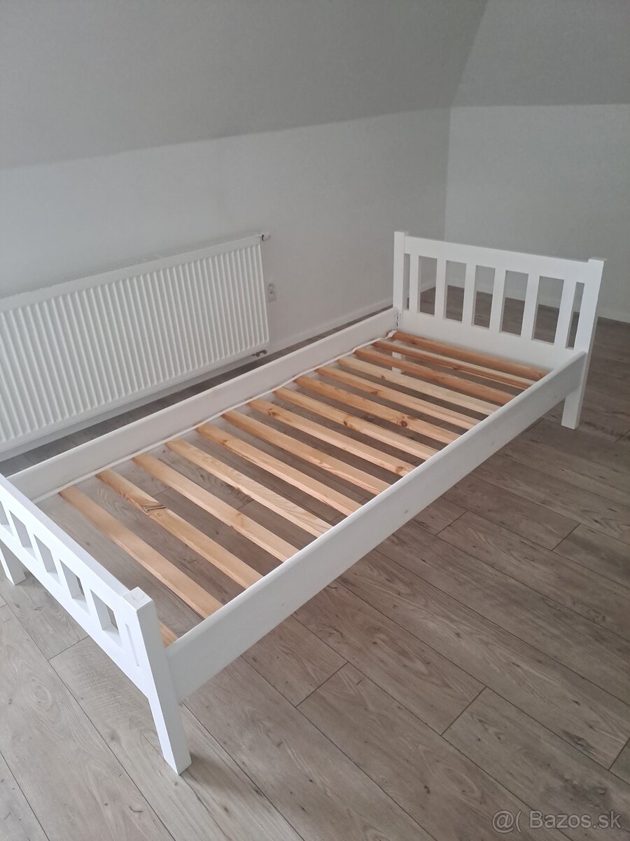 Ponúkam vo výbornom stave masívnu posteľ s roštom v rozmere 90x200, farba biela.