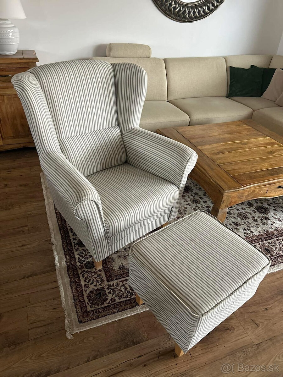 Predám kreslo "Ušiak" spolu s taburetom. Vynikajúci stav. Kupované v Decodome.