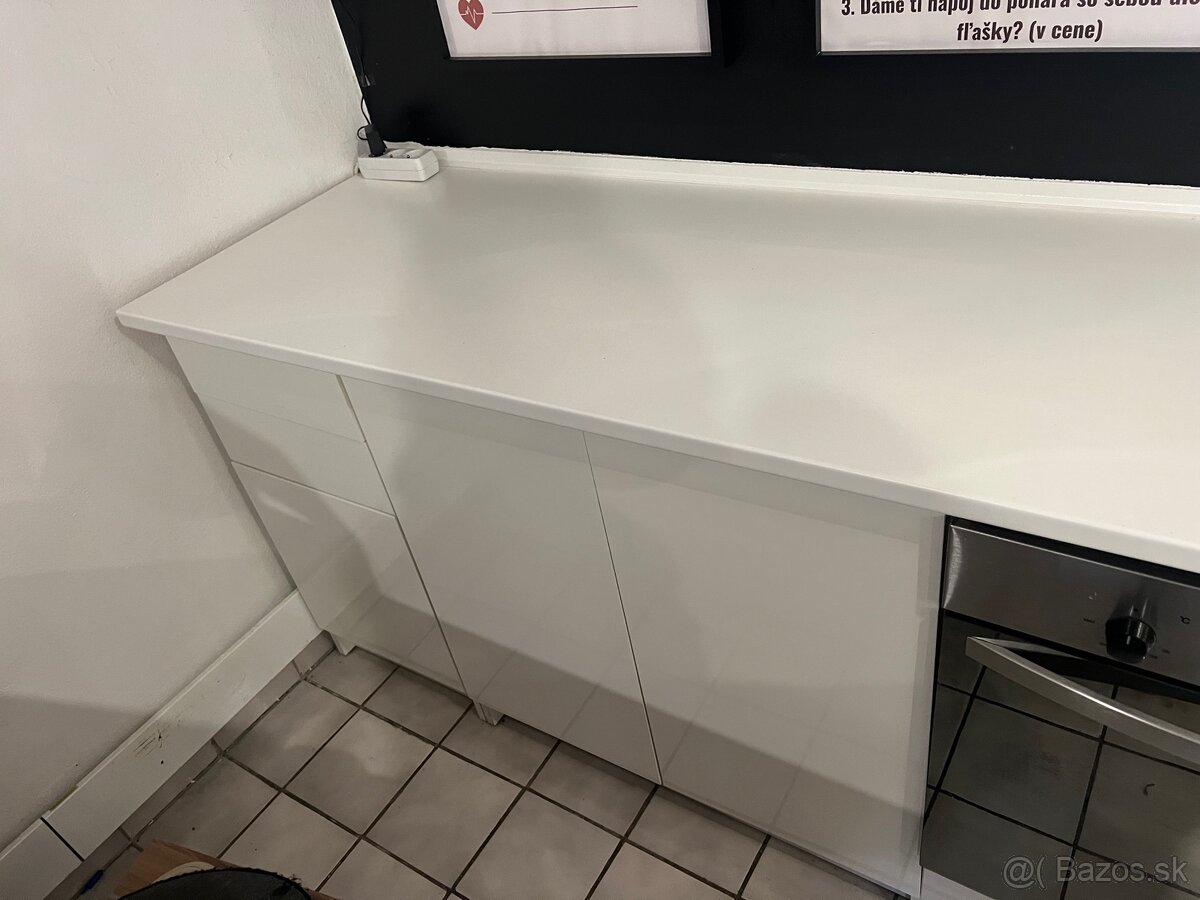 Predám spodné skrinky bielej kuchynskej linky spolu s bielou kuchynskou doskou, dohoda na cene možná