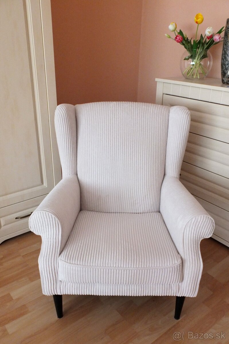 Predám kvalitné kreslo Gutmann-ušiak. Farba smotanová. Výborný stav. Nutný odvoz. Pôvodne 450€ , cena pevná.