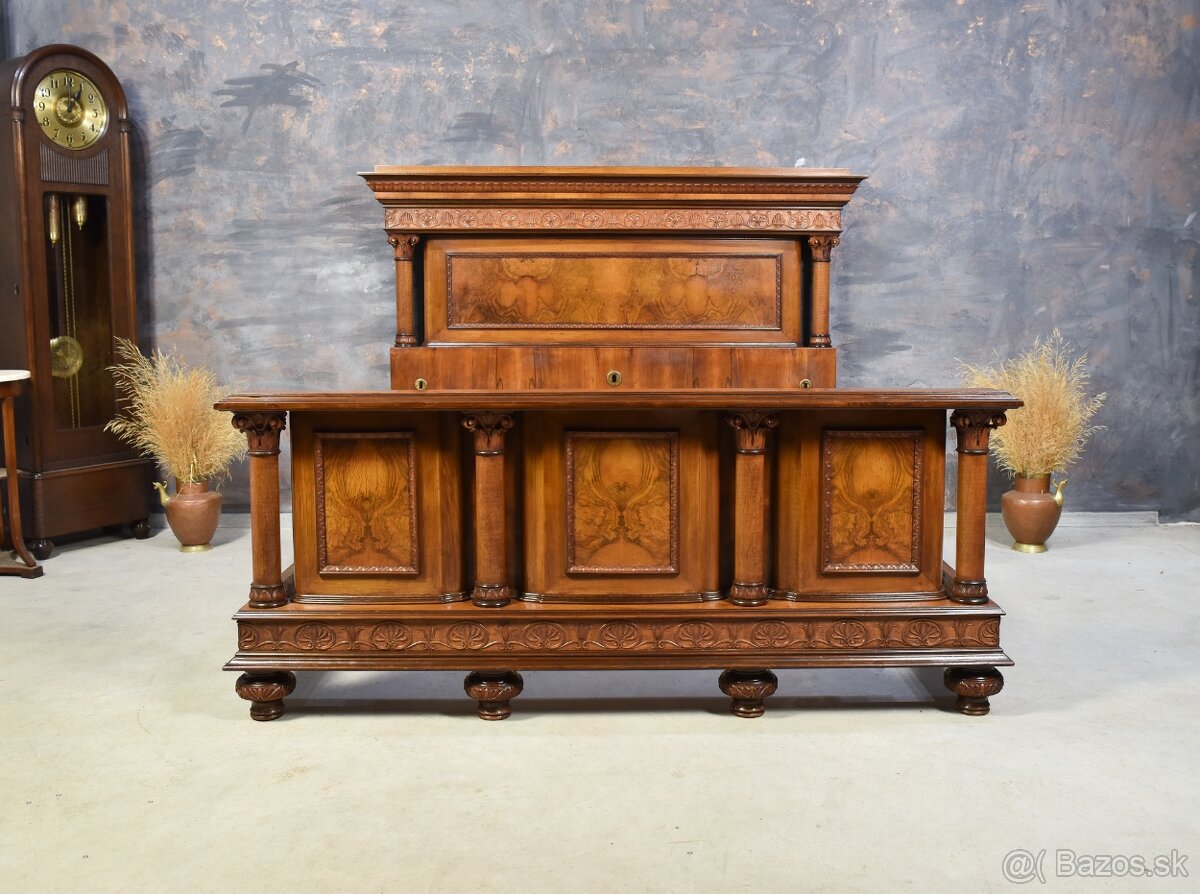 Výnimočná manželská posteľ vyrobená z orechového dreva v elegantnom neorokokovom štýle.