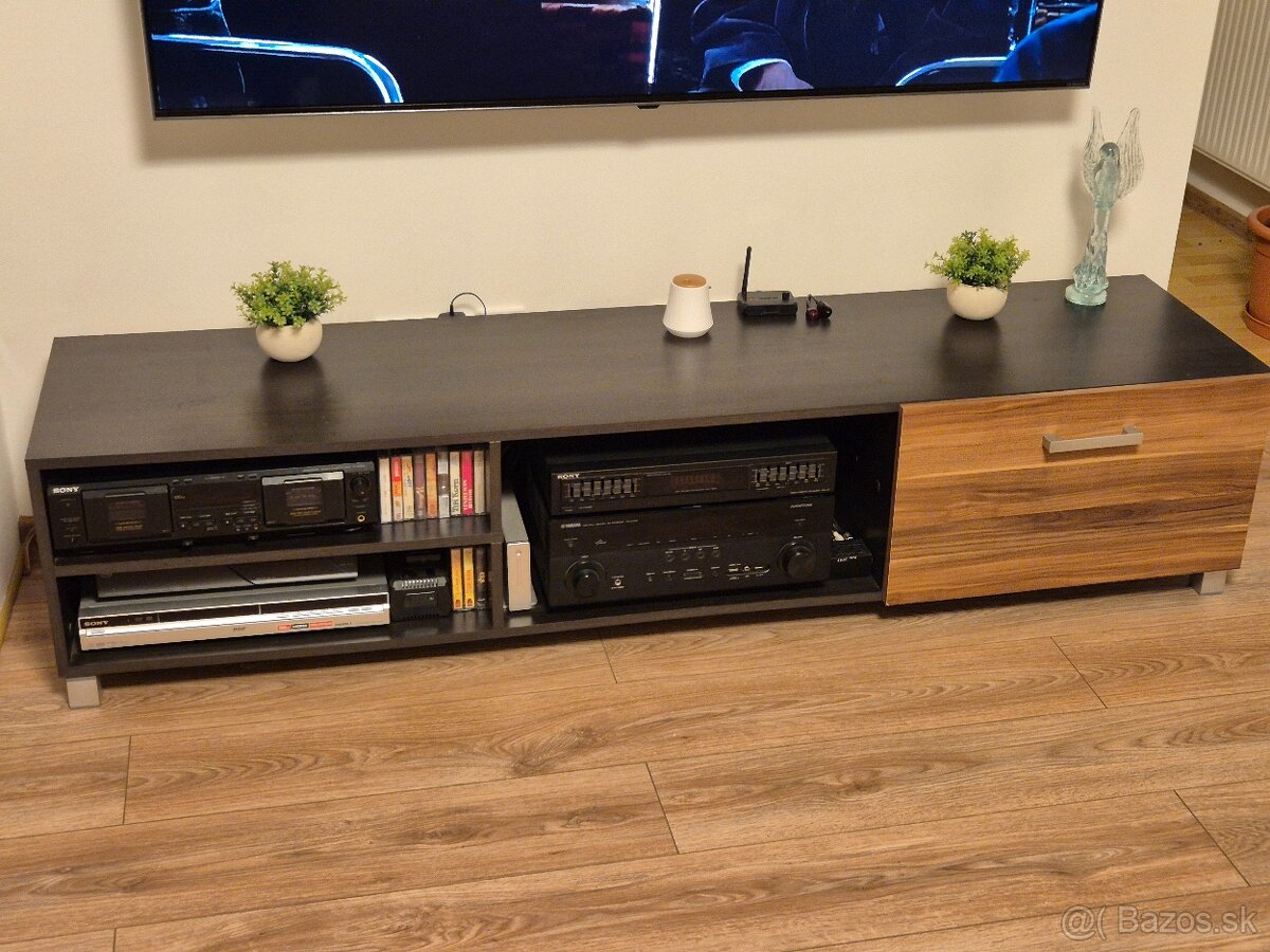 Predám obývačkou zostavu pozostávajúcu z TV stolíka, závesnej skrinky, vitríny spolu s konferenčným stolom