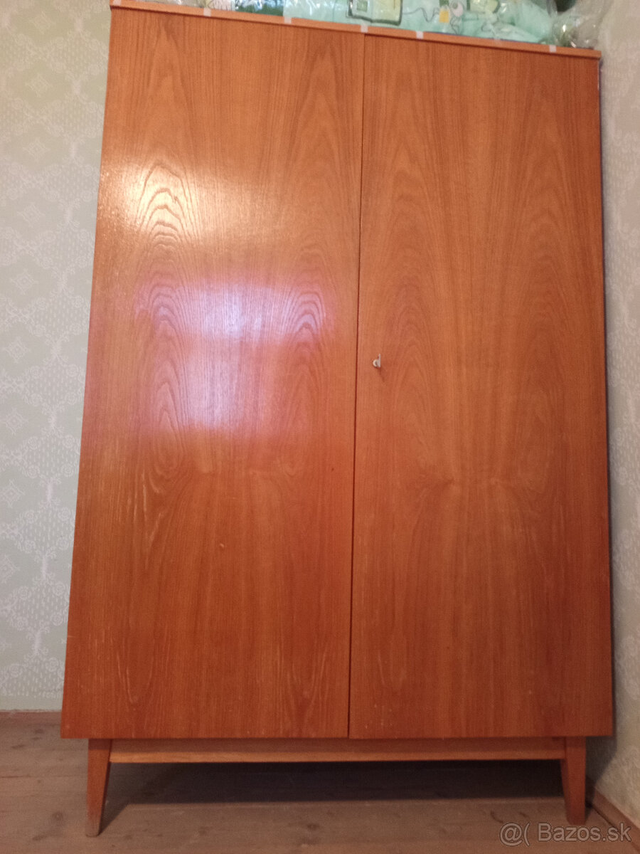 Predám 2 ks starších drevených skríň na nožkách, povrch je lakovaná dyha. Cena je za obe. Možno kúpiť aj jednotlivo. Osobný odber. Ihneď.