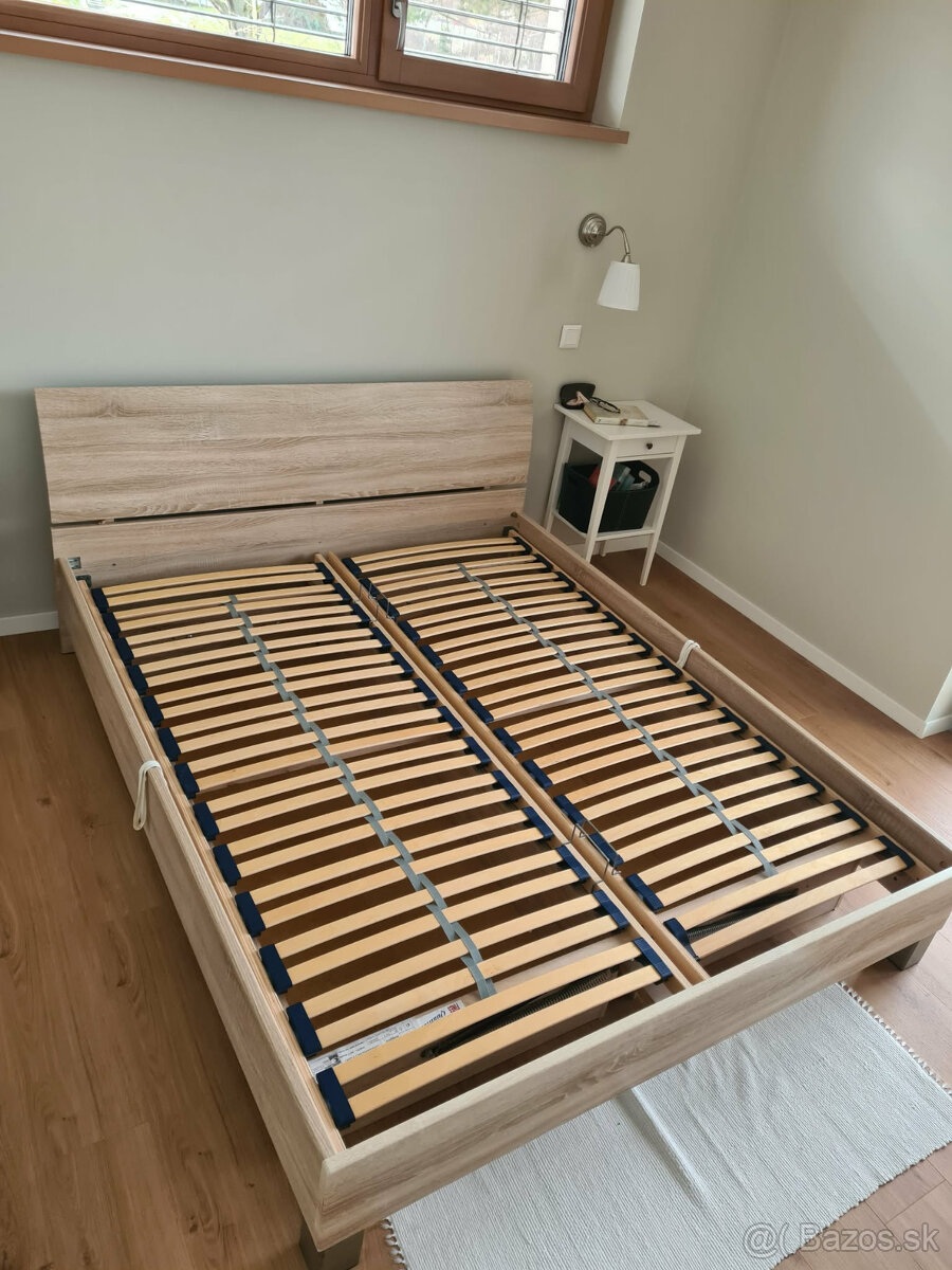 Predám posteľ s úložným priestorom a s výklopnými roštami bez madracov. Rozmer 160x200. Postel je z melamínky s dekorom bardolíno, v dobrom stave s bežným opotrebovaním.