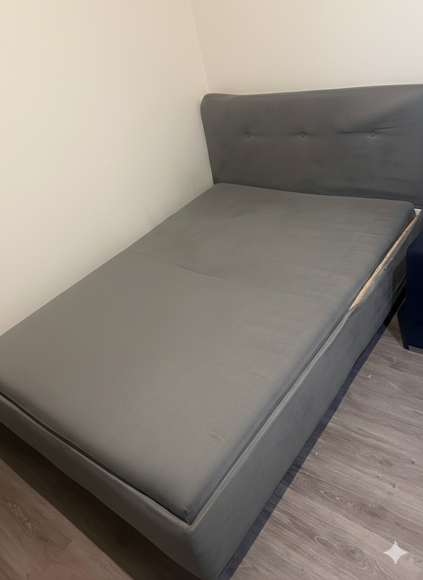 Predám čalúnenú posteľ o rozmere 140 × 200 cm (vhodná pre jednotlivca alebo ako menšia manželská).