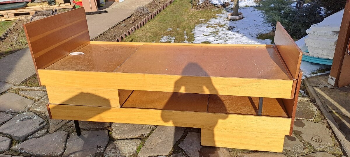 Predame manzelsku postel, retro, z kvalitneho materialu. Perinak v prvej polke postele. Postele su na fotkach polozene na sebe.