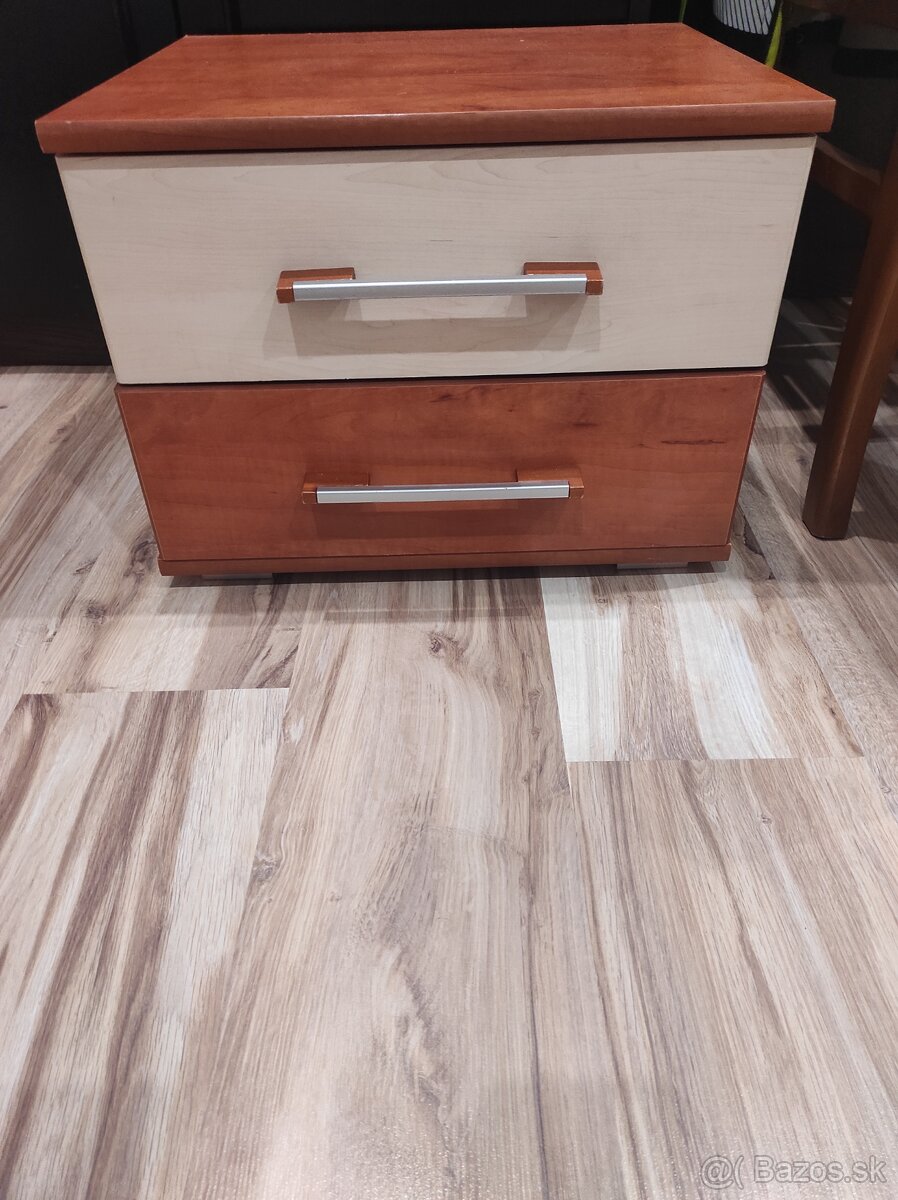 Predám spálňovú zostavu. Komoda šírka 82, výška 83, hĺbka 43. Skriňa šírka 226, výška 213,hĺbka 60. Posteľ bez matraca šírka 173, dĺžka 210. Nočné stolíky šírka 46, výška 35, hĺbka 40.