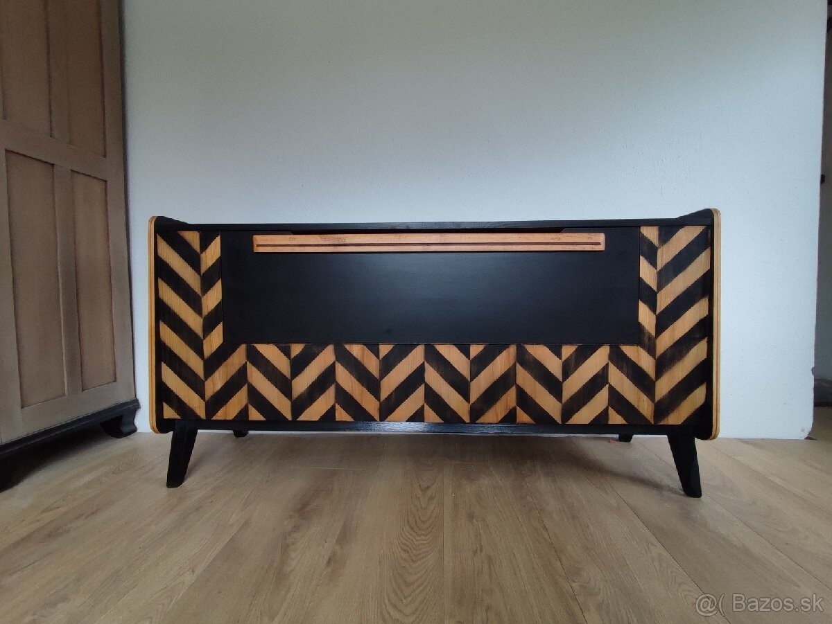 Retro komoda - J.Jiroutek - [20.2. 2026]Predám retro komodu so zasúvacími dvierkami, určenú na renováciu podľa vlastných predstáv, dizajnér J. Jiroutek. Štýlový solitér do retro aj moderného interiéru, vhodné ako knižnica, barová skrinka, vitrína, komoda do pracovne.