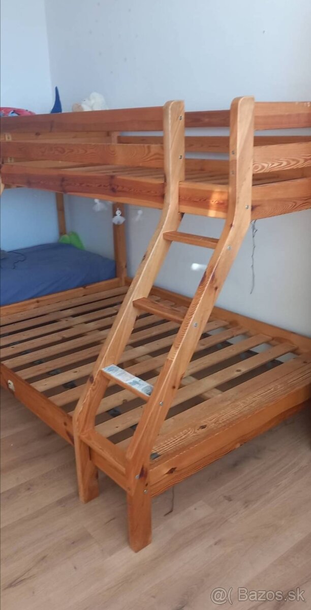 Poschodová posteľ 140 x 200 - [22.2. 2026]Predám takmer novú poschodovú posteľ, úplne bez poškodení, materiál borovicový masív, vrchné lôžko 90x200, spodné lôžko 140 x 200, schodíky je možné umiestniť na jednu alebo druhú stranu.