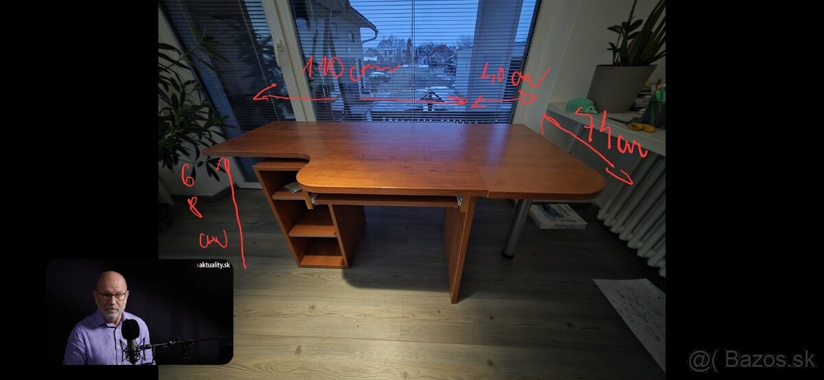 Predam bukasovy pracovny stol, povrchova uprava/farba kalvados s rozmermi: verzia1: dlzka 110cm, vyska 68cm, sirka 76cm. verzia2: dlzka 150cm x 68cm vyska, sirka 76cm. Cena 70eur. Odber Rosina okr.Zilina. kontakt 0910999755