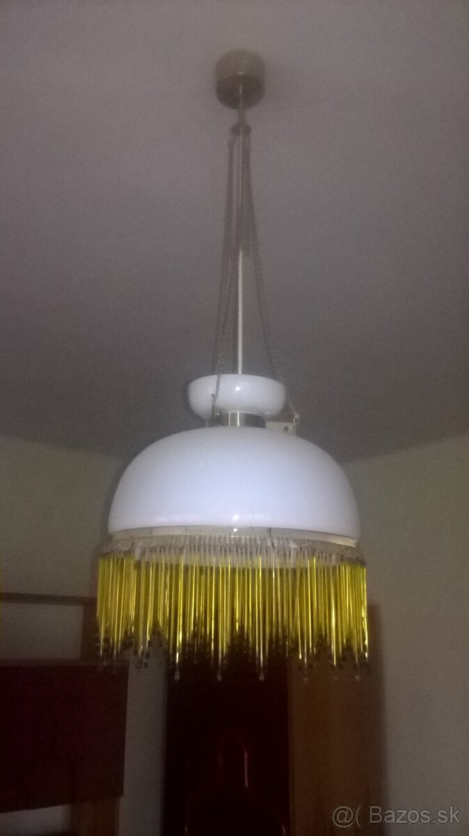 Ponukam pekny uz starožitný luster biely so žltými sklíčkami.