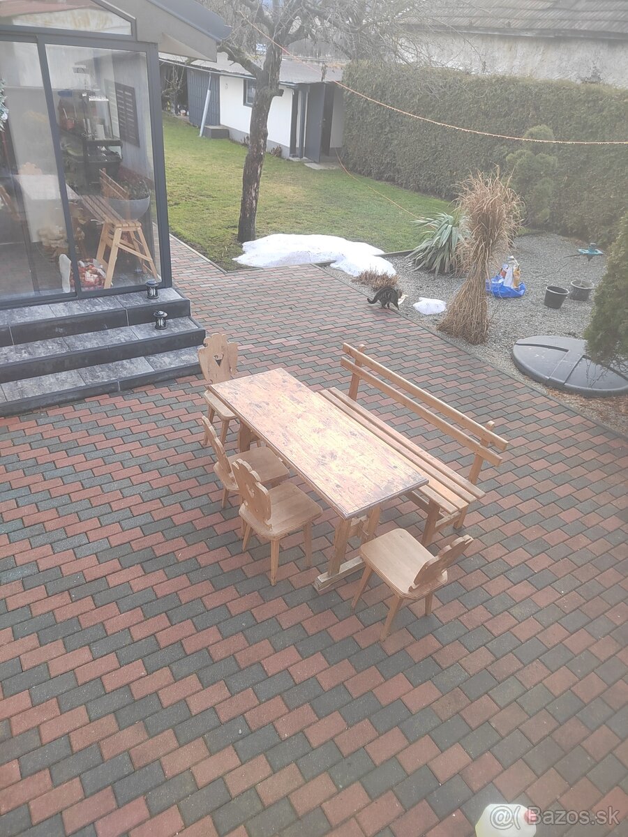 Predám nábytok 4 stoličky stôl a lavica drevené.