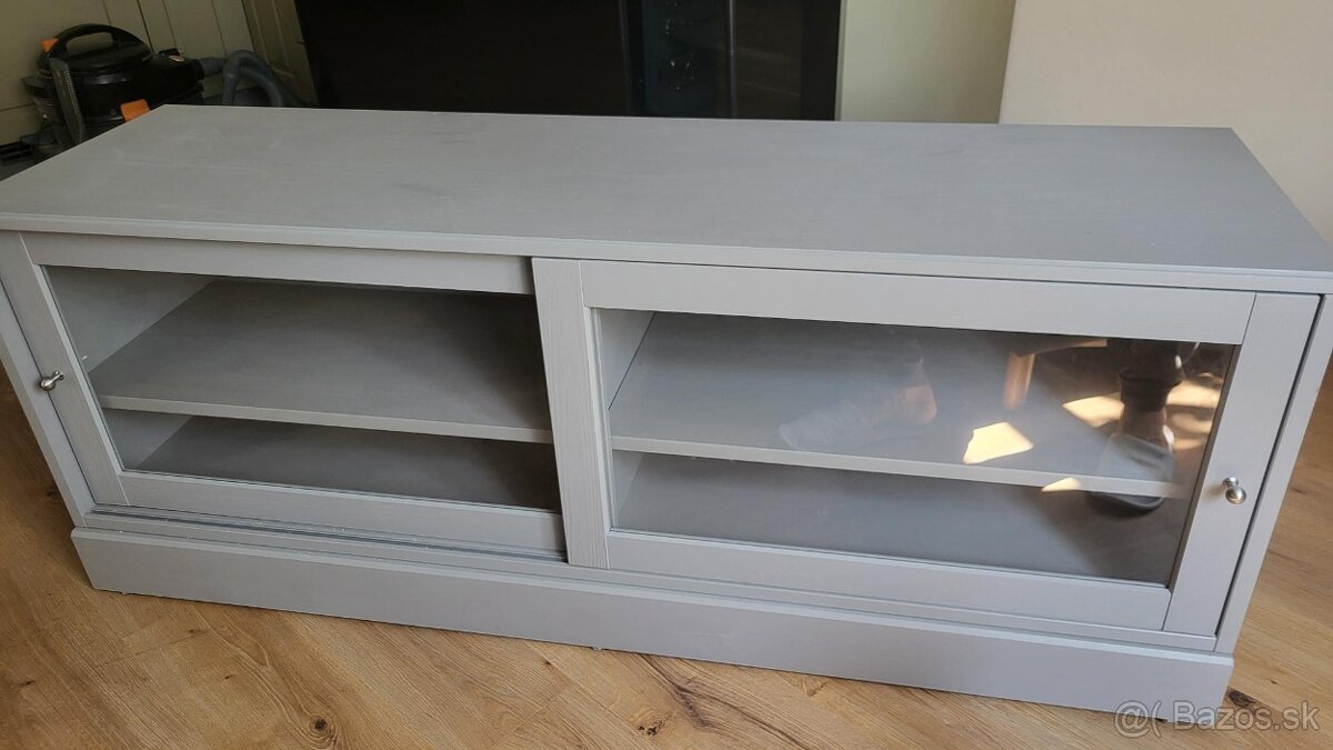 Z dôvodu zmeny dispozície bytu, predám túto tv skrinku z IKEA. V byte, kde som trvale nebýval bola rozbalená 2 roky. Je bez funkčných aj vizuálnych poškodení. Rozmery 160x62x47cm (šírka,výška,hĺbka). Farba sivo-béžová. Len osobný odber v BA.