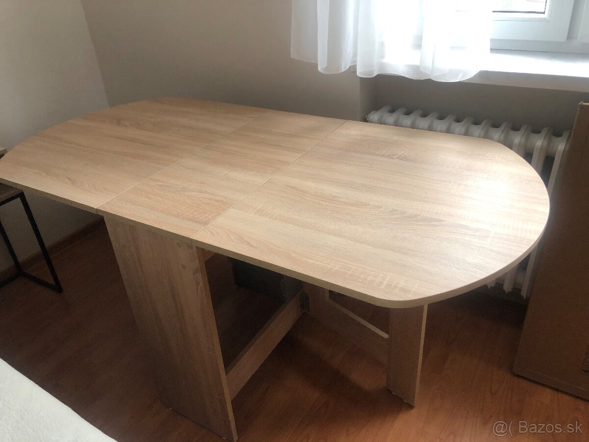 Predám nepoužívaný jedálenský skladací stôl , celková šírka po rozložení obidvoch strán 164 cm. Bez poškodení