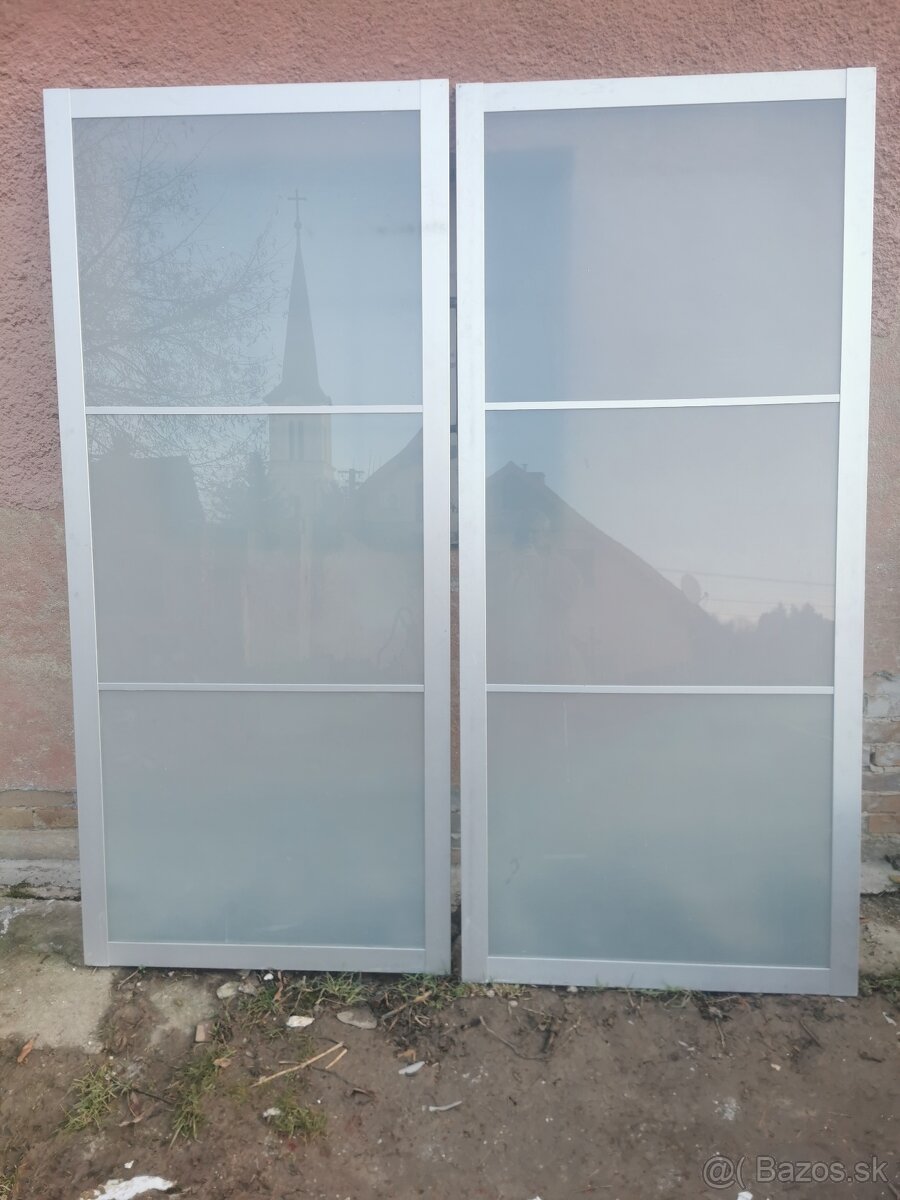Predám sklené dvere možnosť širšieho využitia okrem roldor napríklad predelenie miesta atď.viď foto.Rozmer šírka jedných dverí je 102,5 x výška 231,5.Celkova šírka je teda 205cm.Na zadnej strane sú vodiace kolieska.K dverám sú hliníkové kolajničky.Inzerát platný do zmazania .
