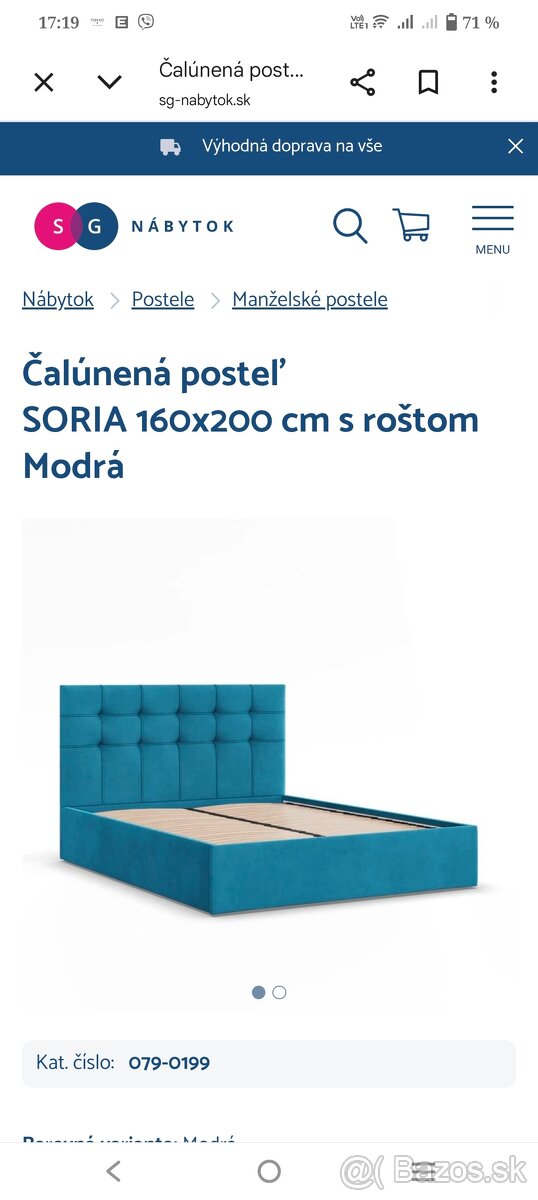 Manželská posteľ 180x200 - [23.2. 2026]Predám manželskú posteľ s úložným priestorom a nastavitelnymi lamelovymi roštami. Rozmer lôžka 180x200 cm. Rozmer postele š x v x d 250x48x238 cm. Posteľ má LED osvetlenie .