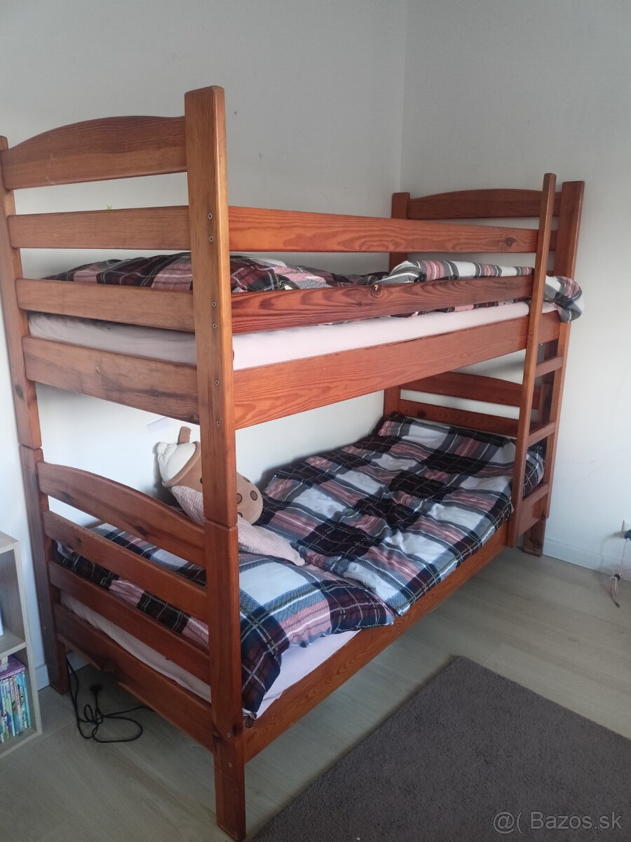 Predáme drevenú detskú poschodovú posteľ, aj s 5 ročnými matracami. Posteľ je zachovala a dá sa rozdeliť na dve samostatné postele.