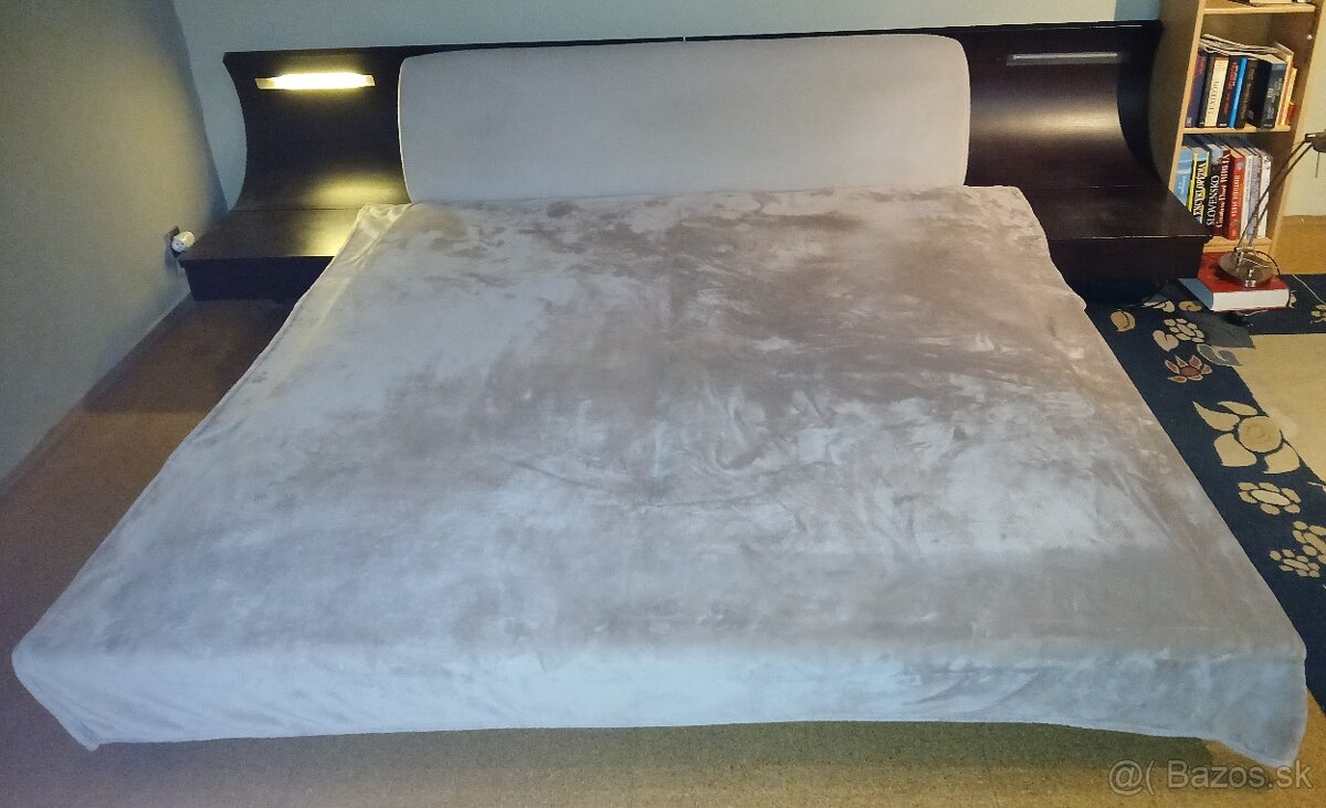 Posteľ je málo používaná v dobrom stave. Súčasťou postele sú nočné stolíky s osvetlením. Ku posteli dávam aj rošty a matrace.
