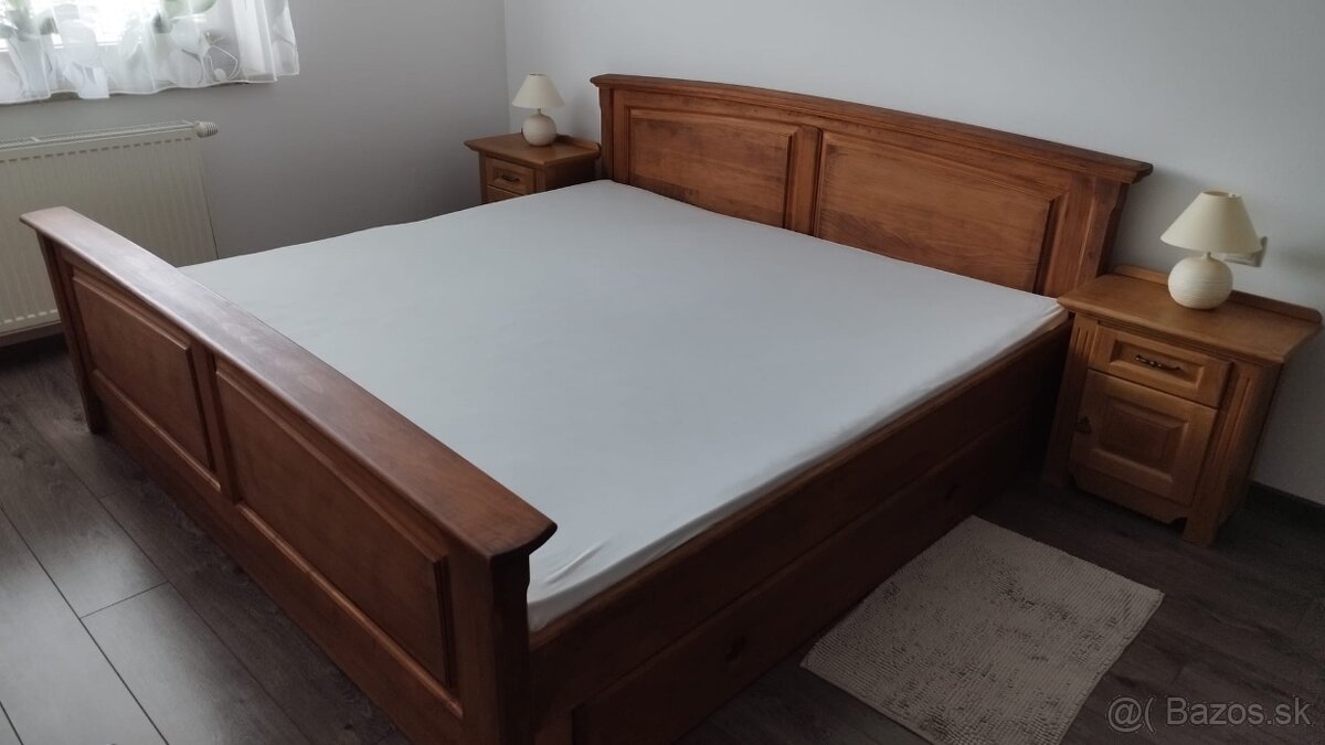 Predam manzelsku postel z masivu s matracom a nocnymi stolikmi rozmer postele je 200x200 matrac je znacky materasso s kokosovou doskou letna a zimna strana postel je v dobrom stave malo pouzivana robena na mieru odkladaci priestor je na kolieckach dohoda mozna