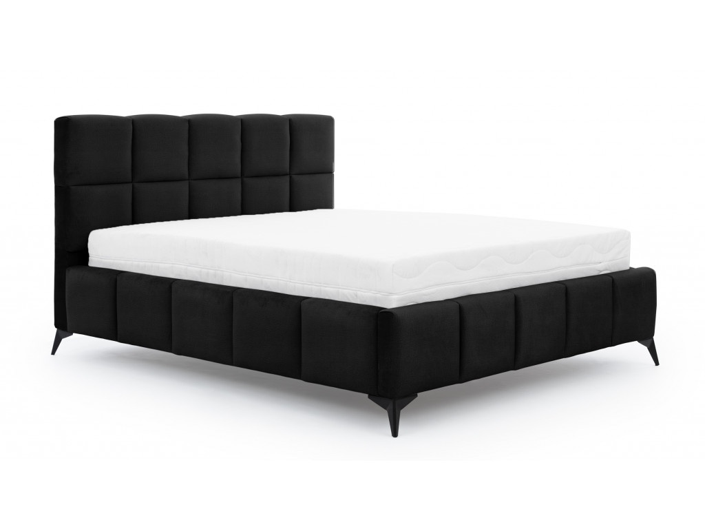Mäkké čalúnené čelo je s penovou výplňou. Má úložný priestor na posteľnú bielizeň.Vysoké čierne oceľové nožičky sú výhodou (13,5 cm) – ideálne aj pre robotický vysávač