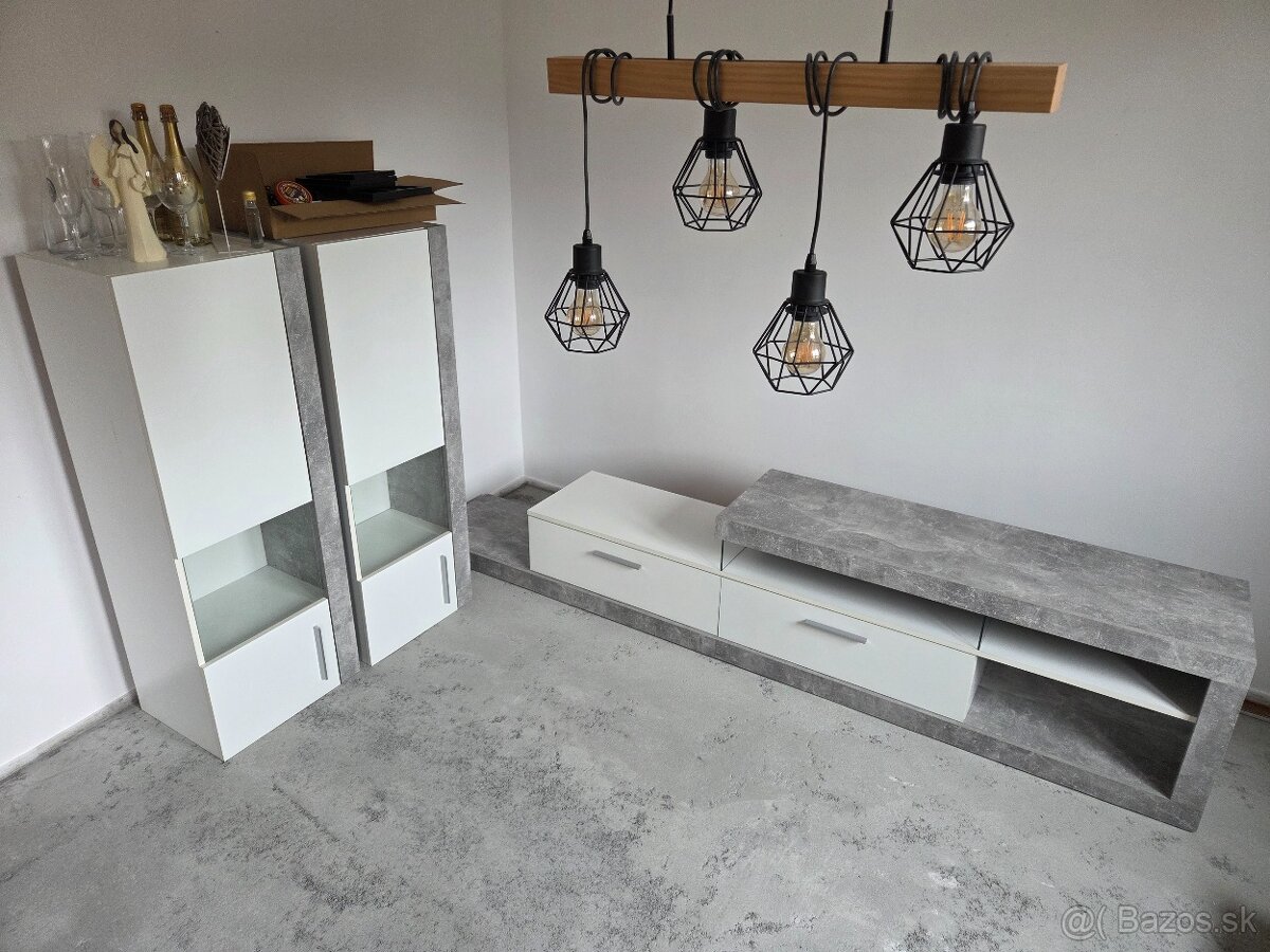 Predám obývaciu zostavu v dekore beton- konferenčný stolík, tv stolík, 2x závesná skrinka.