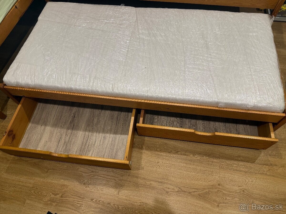 Pokúkam na predaj posteľ z mäkkého masívu. Kompletne aj s roštom, matracom a úložnými šuflíkmi. Je nižšia, ale je to plnohodnotné dospelácke lôžko.