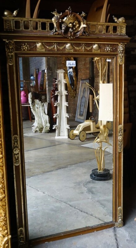 Krásne starožitné zrkadlo - navrchu zdobené drakom, slimákmi a mušľami - 170 x 95 cm